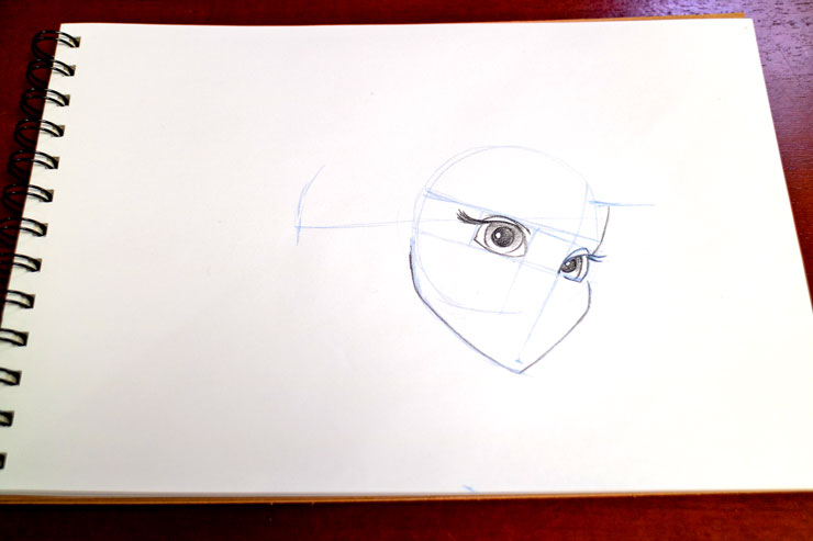 そして右目。先ほど書いたガイドを基準に描いていきます。