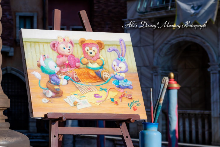 ゴンドラ乗り場の手前、いつもダッフィーフレンズのスケッチが置いてある場所です。(ジェラトーニ作なんでしたっけ??)