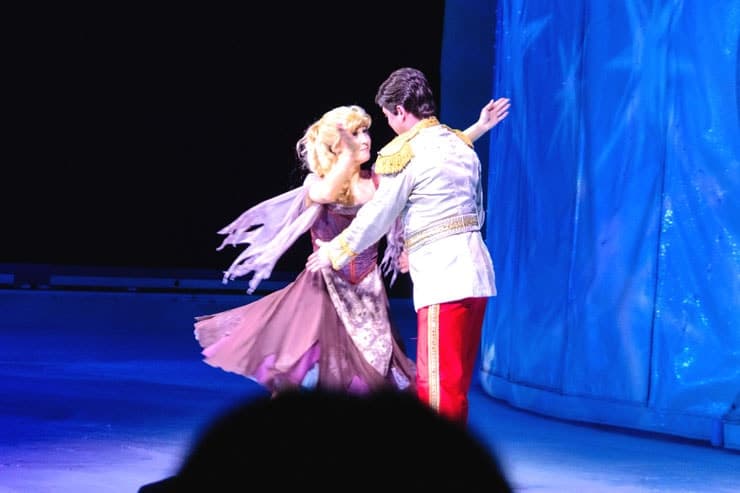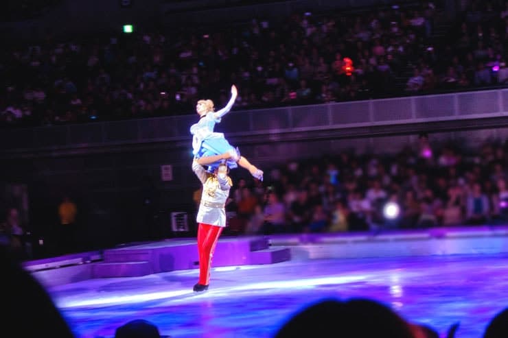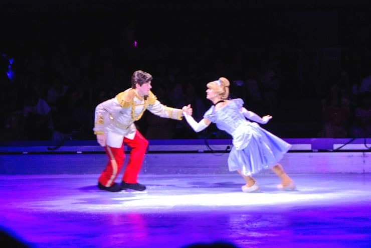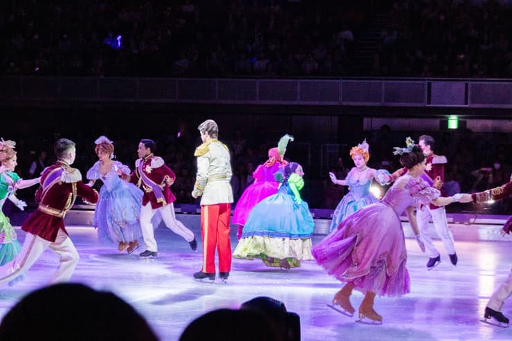 スケートリンクの外周をぐるーり回ってくれるので、どの座席でも馬車に乗っているシンデレラをしっかり見ることができます。