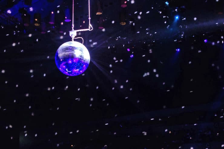 大きなミラーボールが下りてきて、会場中をキラキラにします。
