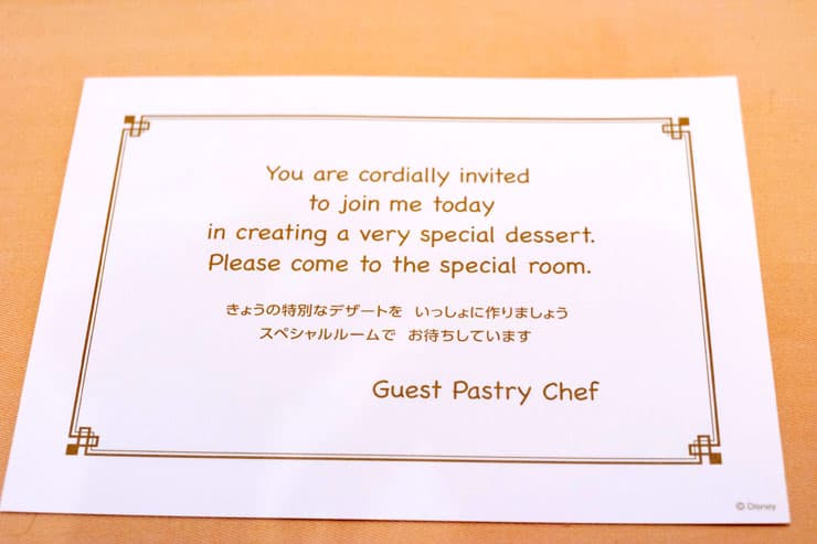 「きょうの特別なデザートをいっしょに作りましょう スペシャルルームでお待ちしています」