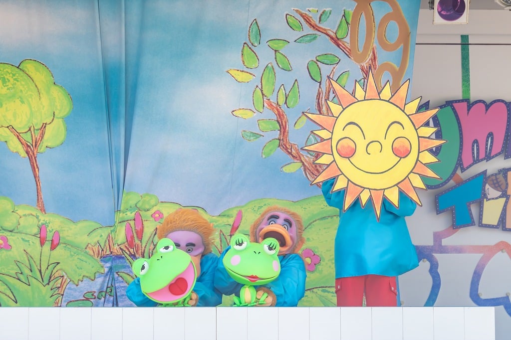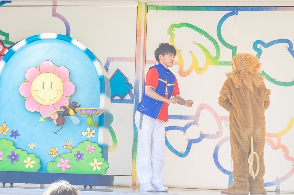 一緒に踊って、大きな声を出して、元気いっぱい参加できる体験型のショーです。