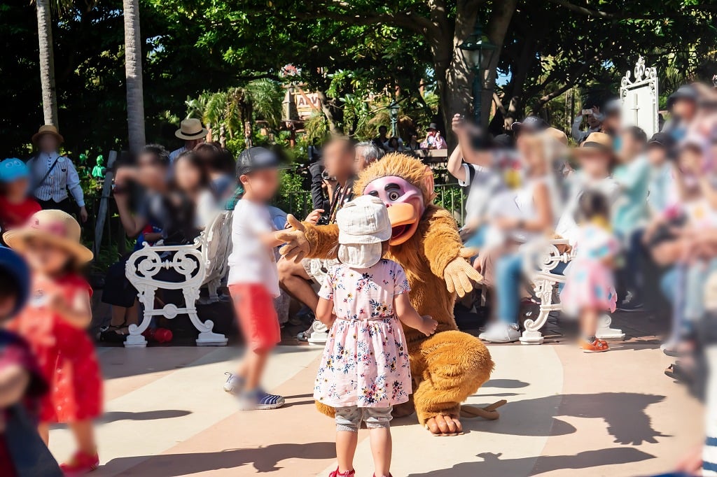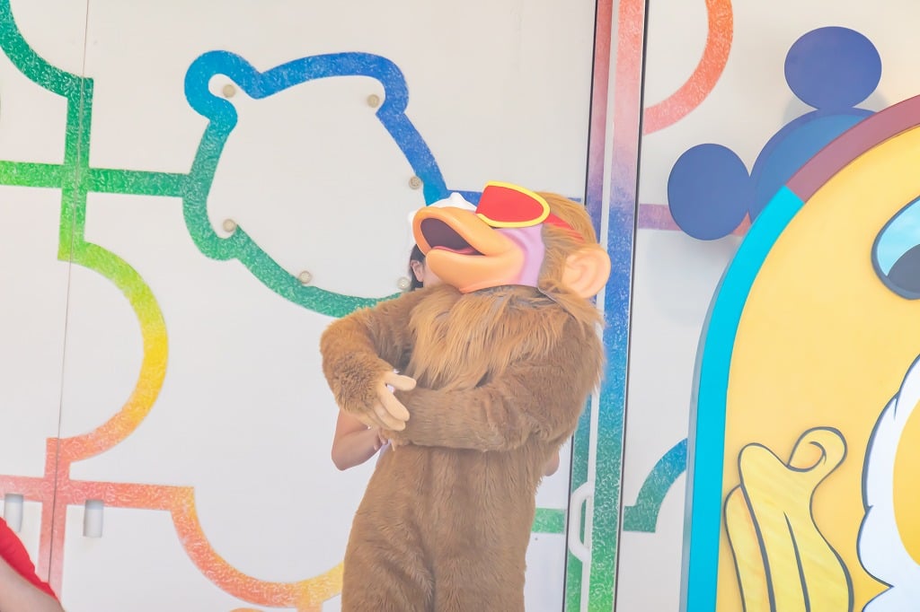 モンキーに気づいてもらえました。むぎゅっとハグ。よかったねー❤自分から行けない子も、お姉さんたちが声をかけてくれてキャラクターのところに誘導してくれます。とびっきり特別な思い出になりますよね!