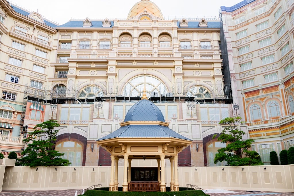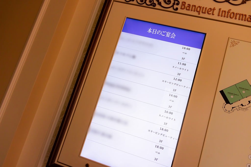 奥に、シンデレラ城とディズニーランドホテルが描かれたついたてが置いてあります。