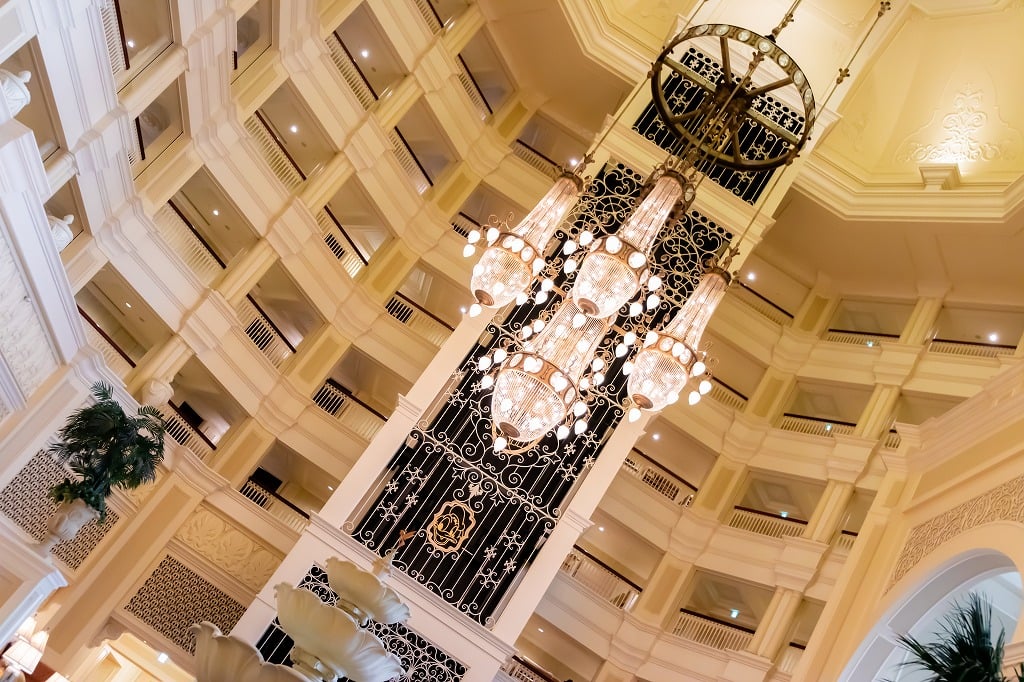ディズニーランドホテルは、ロビーにもカーペットに隠れキャラクターがいるんですよね。こちらでは紹介は割愛しますが、気づくと感動します。上手に柄に隠れてるんですよ!