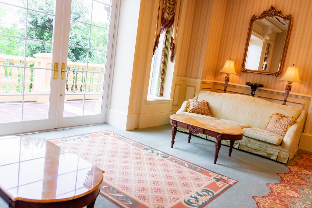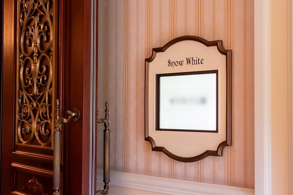 スノーホワイトは一番手前のお部屋です。この廊下も美しいー・・!廊下と呼んでいいのか戸惑うほど豪華な景色。