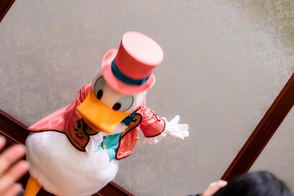 ディズニーランドホテルのキャストさんの間に伝わる呪文を唱えると、魔法でドナルドが登場しました!!(本当に魔法みたいでびっくりするんですよ)