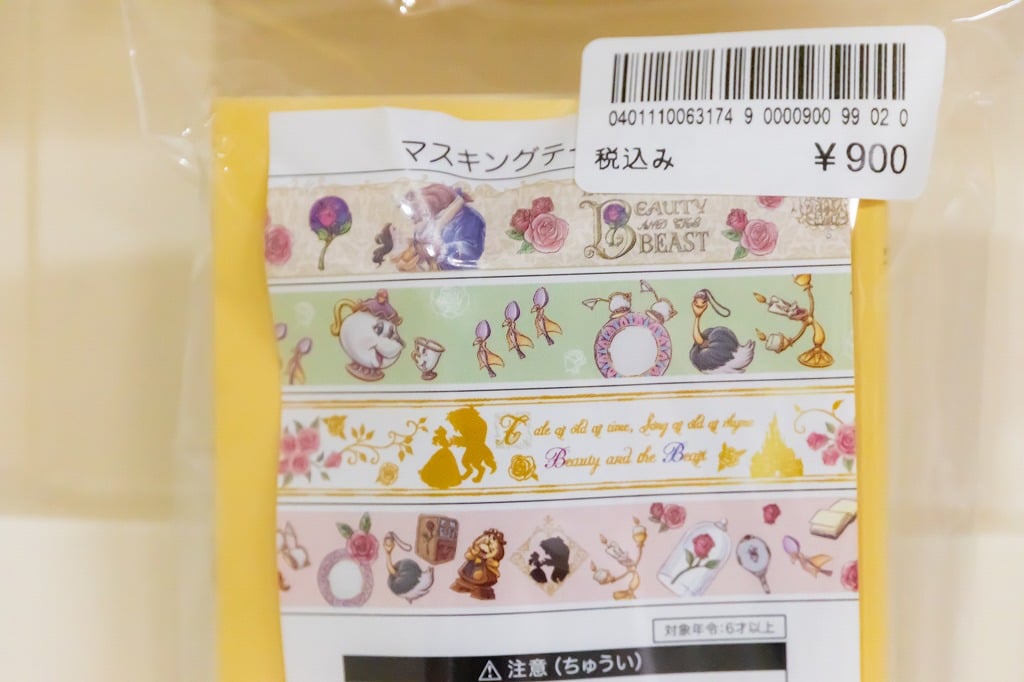 まずはマスキングテープ。マスキングテープってその響きだけでもちょっとときめきますよね。それが美女と野獣柄!しかも公式様、さすがのクオリティ。かわいすぎてとろけそうです。