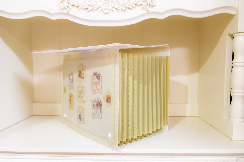 こういう細かいところへのこだわりで、グッズがより一段と素敵になりますよね。どこ見てもかわいい。このファイリングケースはしまいこまず、普段使いして楽しみたいと思います。