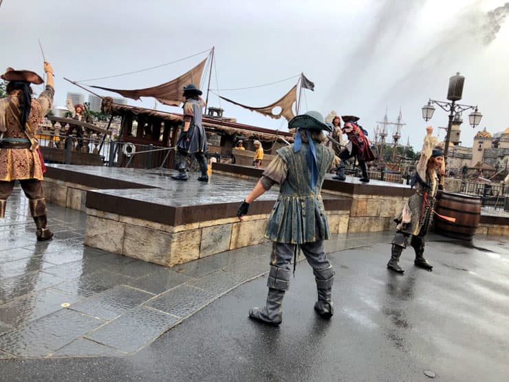 最前列からの鑑賞だったので、海賊のダンサーさん達にもたくさん絡まれ、水かけられとても楽しい時間になりました!