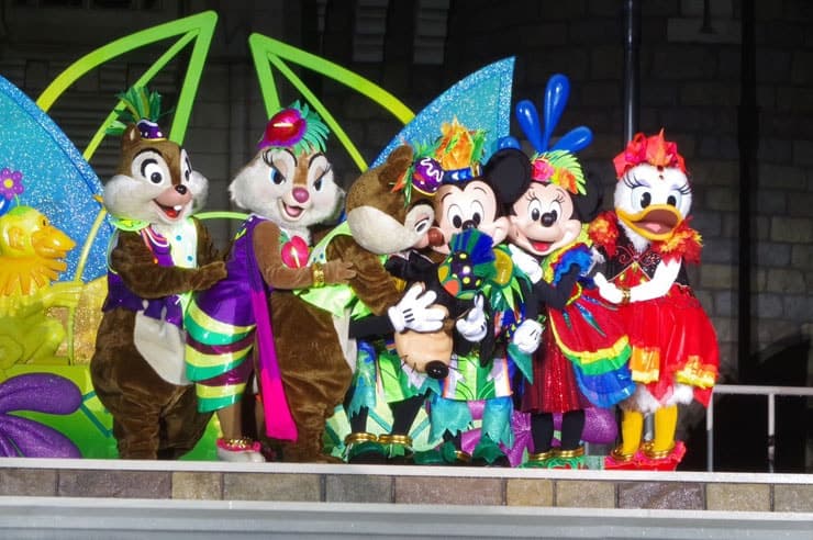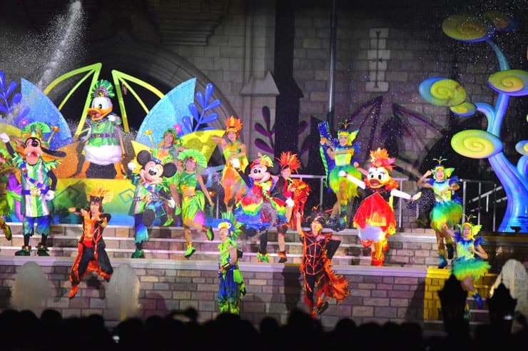 夜のディズニーランドの目的は、城前のナイトショー『オー!サマー・バンザイ!』です。
