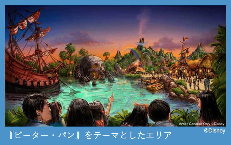 このエリアでは大人気ディズニーアニメーション【塔の上のラプンツェル】【アナと雪の女王】【ピーター・パン】の世界が再現される予定となっています。