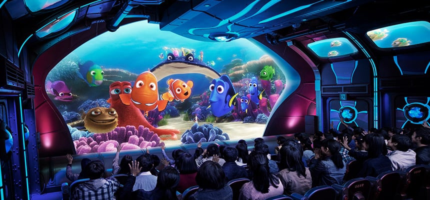 こちらも映画”ファインティング・ニモ”のストーリーがモチーフとなっているアトラクション。画面に出てくるニモや仲間達と一緒に海の大冒険に出発!身長90cm以上から乗ることができます。