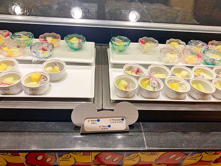 現在は新型コロナウイルスの感染対策としてキャラクターグリーティングは行われていませんが、ビュッフェタイプの食事は変わらず行われ、1時間ごとに行われているバースデーのお祝いも行われていました!