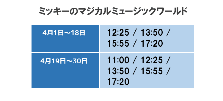 ミッキーのマジカルミュージックワールドの公演スケジュール