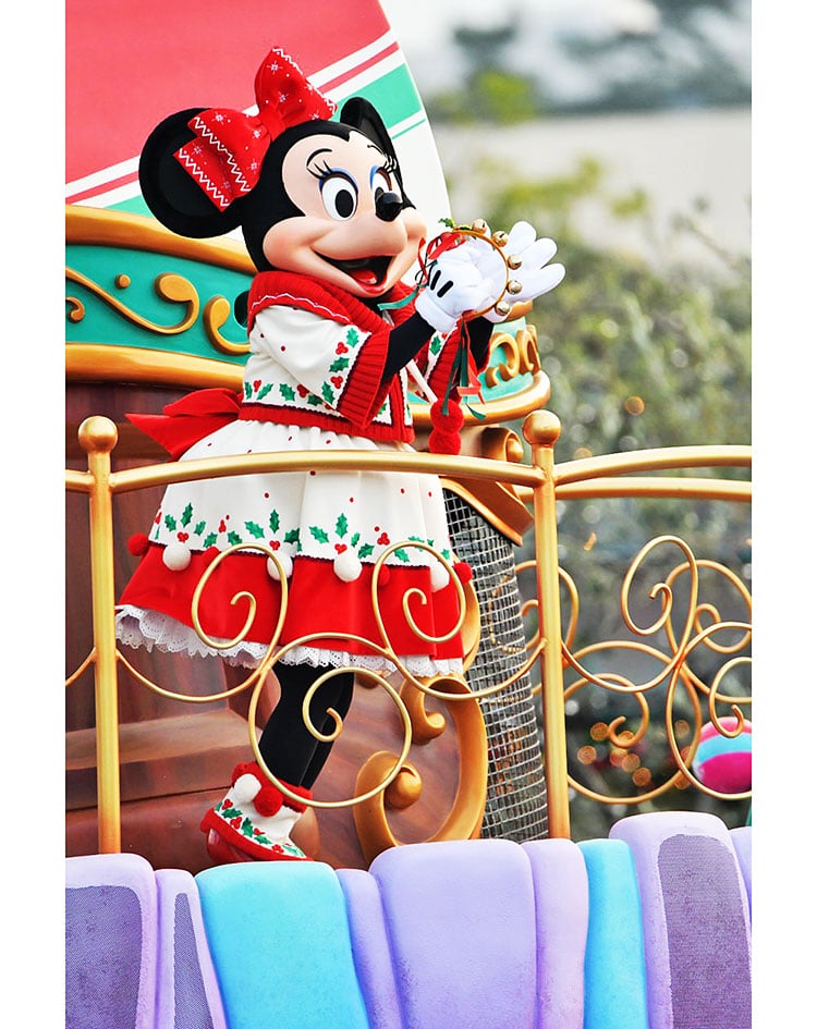 クリスマスのグリーティングパレードでは、ミッキーと仲間達がディズニー・クリスマス・ストーリーズのコスチュームで登場!
