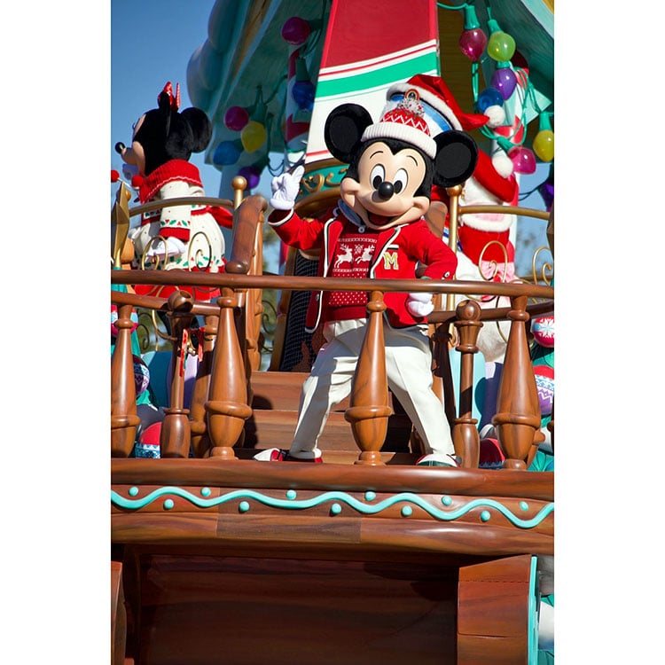 今回のグリーティングパレードは、クリスマス期間ということもありディズニークリスマスストーリーズの衣装と音楽でミッキー、ミニー、ドナルド、デイジーが登場してくれました!