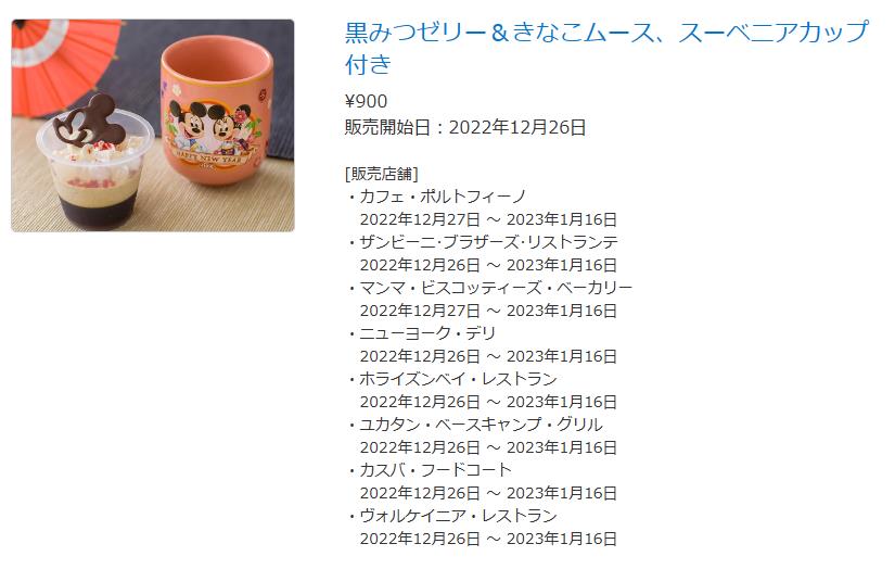 和風の美味しそうなスイーツ”黒みつゼリー&きなこムース”も各パークいろいろな場所で年末から販売されるようです。