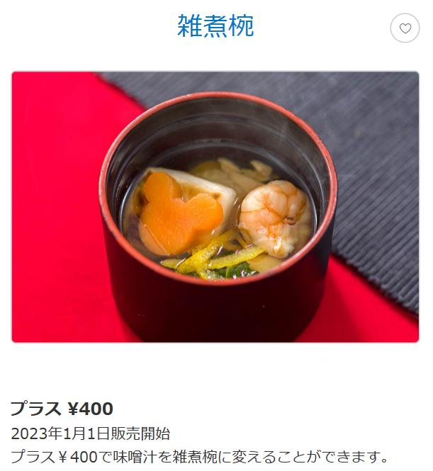 お正月限定パークフードでは、両パーク和食を提供するレストラン”レストラン北斎”と”レストラン櫻”で今年もお雑煮が1月1日限定で食べられるそうですよ!