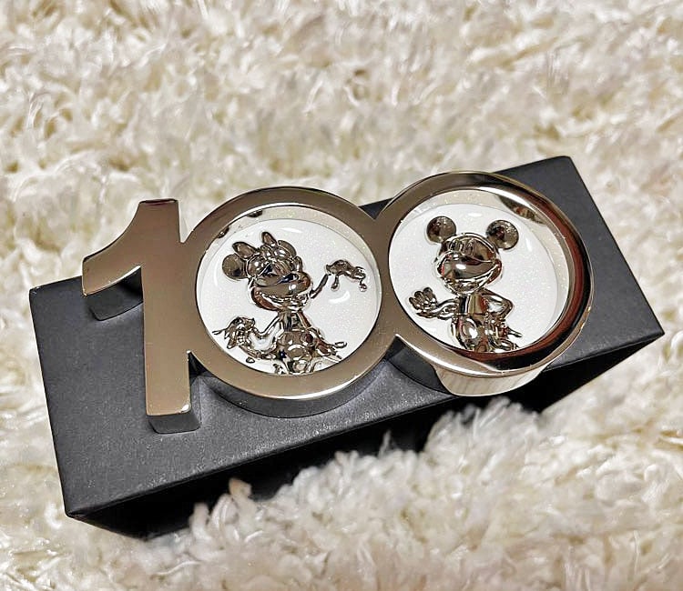 今年のペーパーウェイトはディズニー100周年を記念した100の字が建つのもので、中にミッキーミニーが顔を出しています!