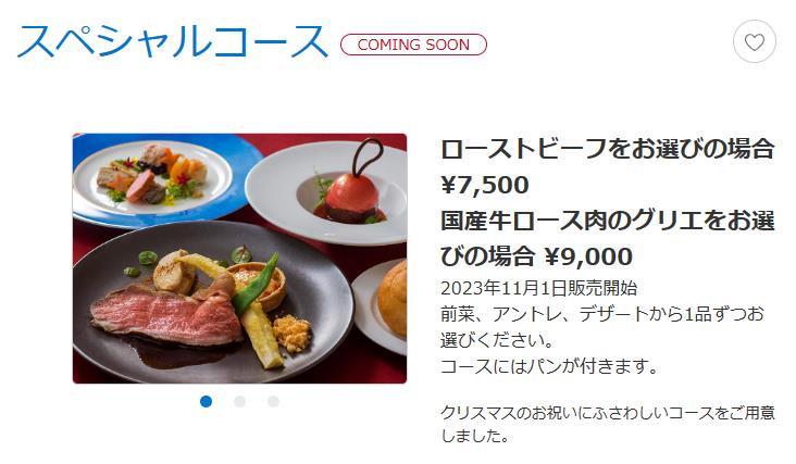 まず私が気になったのは、ブルーバイユーレストランのスペシャルコース!