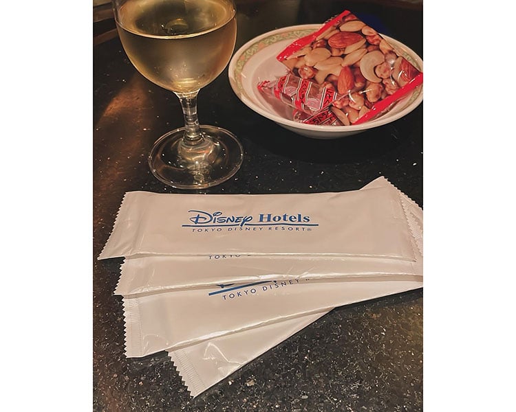 旦那さんがチェックイン中は、大好きなワインとおつまみを食べながらゆっくり過ごしていました^^