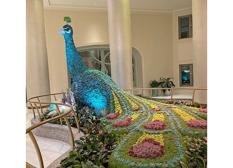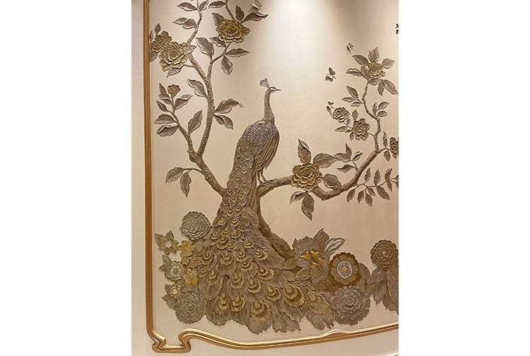 壁には孔雀や蝶々などの生き物たちも優雅に描かれていました。