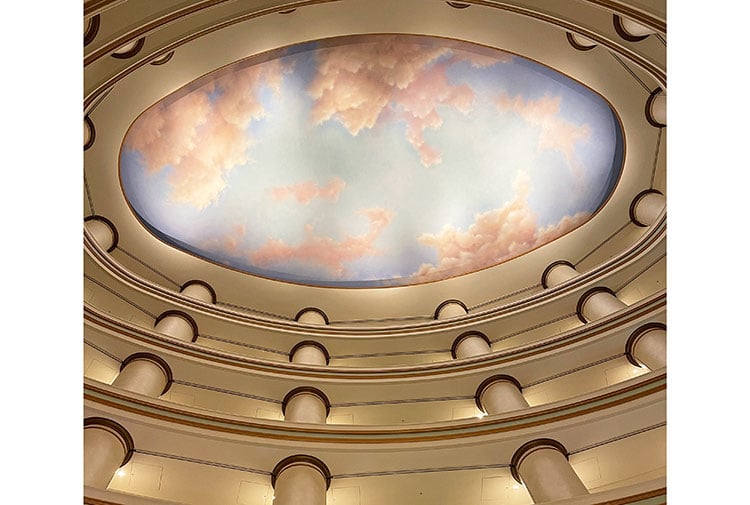 天井は天使が降りてきそうな綺麗な空が描かれており、思わずため息が出る美しさ。