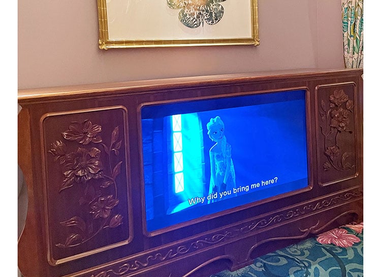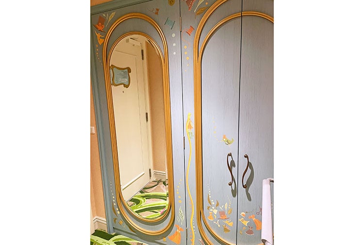 部屋の中は、森の中にいるな雰囲気で草や花が描かれたベッドカバーや絨毯、壁や棚にはラプンツェルやバンビなどの絵も描かれていました。