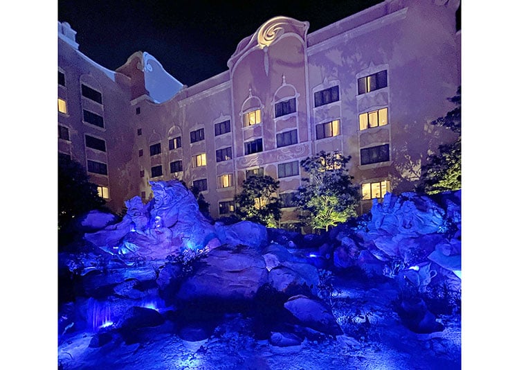 そこには美女と野獣や美女と野獣に出てくるキャラクター達の彫刻があり水が流れライトアップもされ、本当に美しい景色でした。