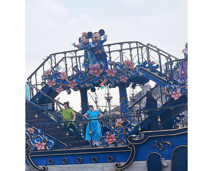 ミッキーやミニーの挨拶以外にも、3つのアニメーションがそれぞれメインになってショーが展開され、パージの上でキャラクターの立ち位置がぐるぐると移動します。