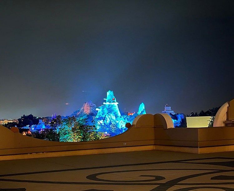 2日目はローズコートサイド側の部屋で、部屋からファンタジースプリングスエリアが少し望めました。