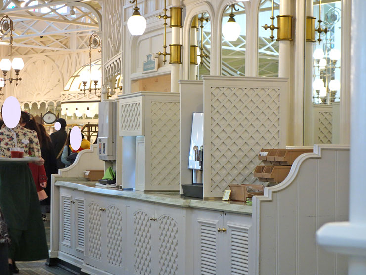 レストラン前に立っているキャストから、「登録はお済みですか?」と、プライオリティ・シーティング(レストランの事前受付)の申込みをしているか確認のお声かけがあります。「はい♪」と返事だけして、店内へ。