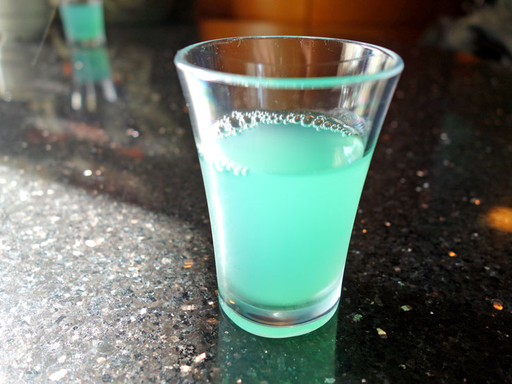 アップルジュース、レモンジュース、ブルーシロップでできた、きれいな色のドリンクです。その他のソフトドリンクは、セルフサービスで利用できます。