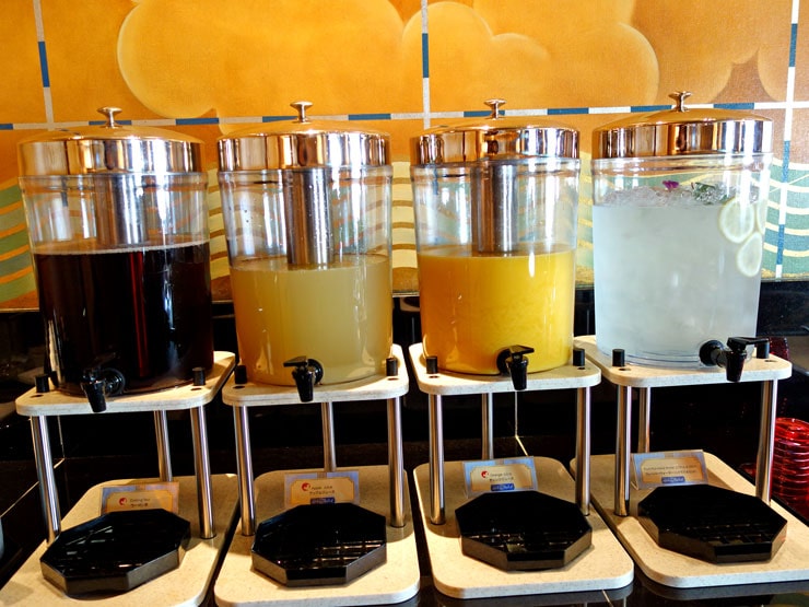 左から・・・ウーロン茶、アップルジュース、オレンジジュース、フレーバーウォーター(シトラス&ミント)