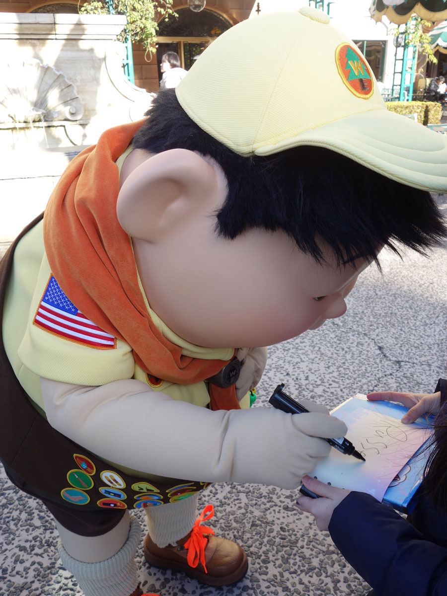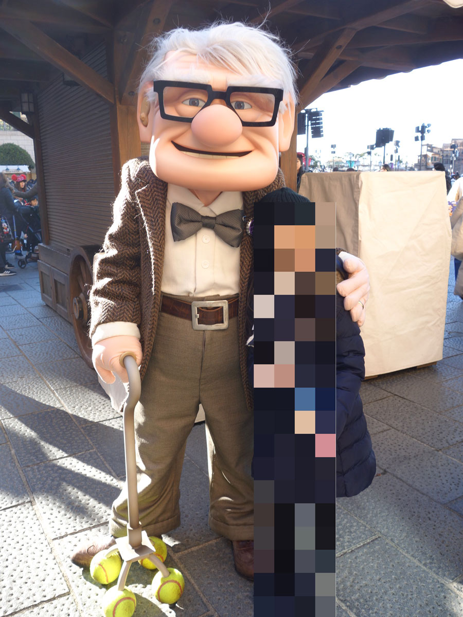 開園時間の午前9時を過ぎると、ピクサーの仲間たちは順次帰ってしまうのですが、この時は『カールじいさん』と『ダグ』が最後まで残っていて、このお二方が帰ったのは午前9時18分頃でした。