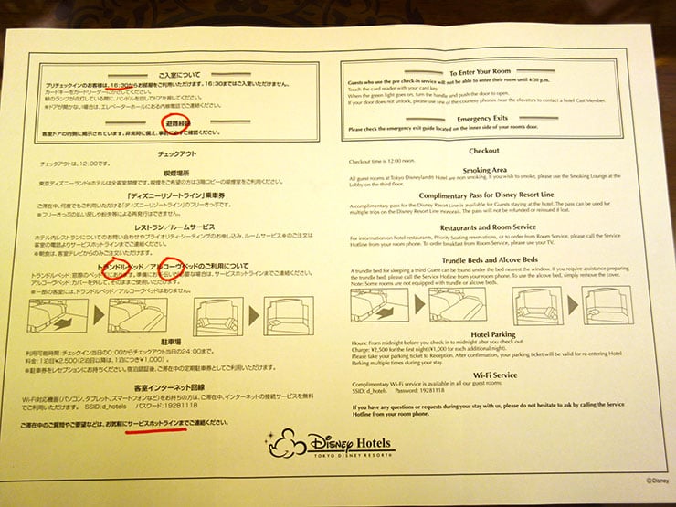 東京ディズニーランドまたは東京ディズニーシーの対象エリアへ一足早く入場できるディズニーホテルの特典「ハッピー15エントリー」の通行書を宿泊人数分発行してもらいます。我が家は、このためにディズニーホテルに宿泊する!といっても過言ではありません。紛失しないよう注意!