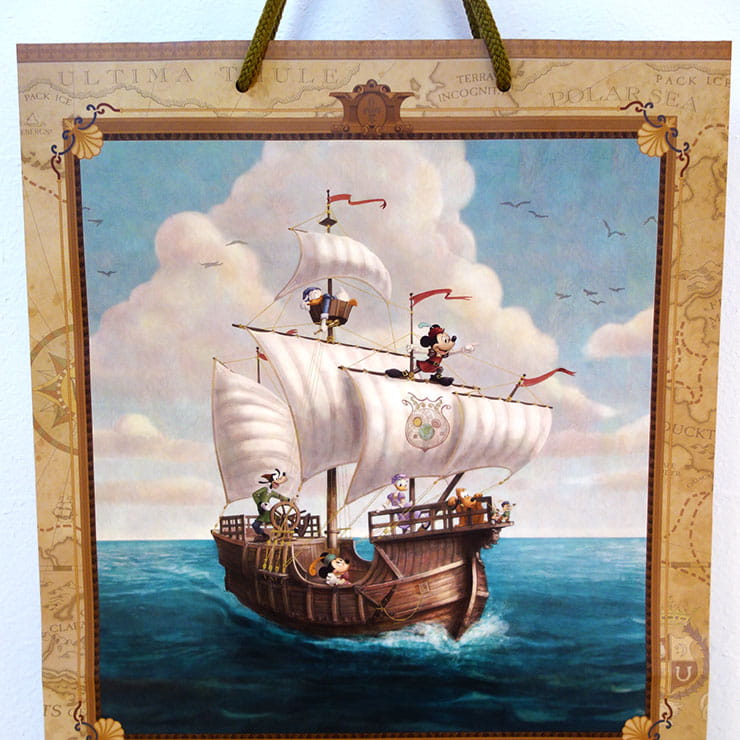 テレビの横にはソファ。壁には航海図が掛けられています。ミッキーたちの冒険と発見の航海の軌跡が描かれていますよ。