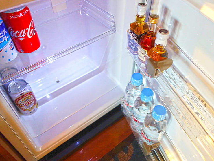 この下に冷蔵庫があり、ソフトドリンク、ミニボトル、ビール、そして無料のミネラルウォーターが3本入っていました。