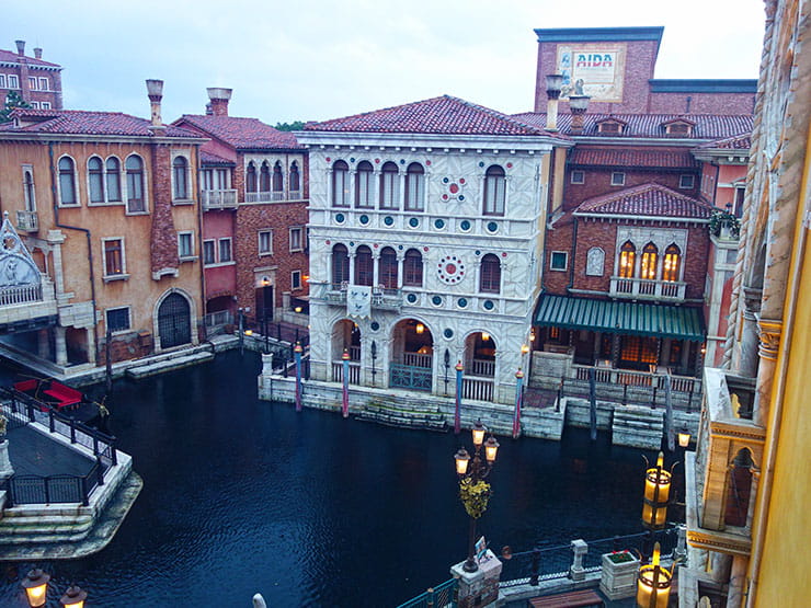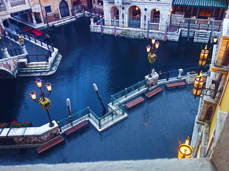 運河と「ヴェネツィアン・ゴンドラ」のりばがよく見渡せます。