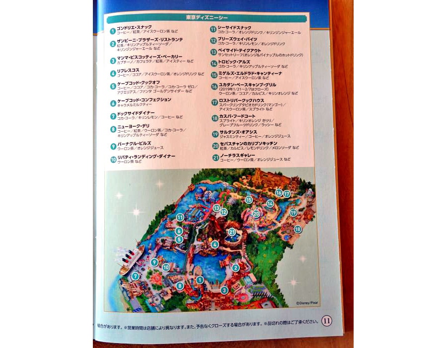 ① ゴンドリエ・スナック コーヒー¥350/¥290、紅茶¥290、 アイスウーロン茶¥350 /¥290 など ② ザンビーニ・ブラザーズ・リストランテ キリンアップルティーソーダ¥350/¥290、 キリンジンジャーエール¥350/¥290、 紅茶¥290 など ③ マンマ・ビスコッティーズ・ベーカリー カプチーノ¥340、カフェラテ¥340、紅茶¥290、 アイスティー¥350/¥290 など ④ リフレスコス コーヒー¥350/¥290、紅茶¥290、 オレンジドリンク¥350 /¥290、 アイスウーロン茶¥350 /¥290 など ⑤ ケープコッド・クックオフ ファンタゴールデンサイダー¥350/¥290、 ファンタレモン¥350/¥290、ウーロン茶¥290、 コカ・コーラゼロ¥350/¥290、 アクエリアス¥350/¥290 など ⑥ ケープコッド・コンフェクション キャラメルミルクティー¥400 ⑦ ドックサイドダイナー コカ・コーラ¥350/¥290、キリンレモン¥350/¥290、 コーヒー¥350/¥290 など ⑧ ニューヨーク・デリ コーヒー¥350/¥290、紅茶¥290、 ウーロン茶¥290、コカ・コーラ¥350/¥290、 キリンアップルティーソーダ¥350/¥290、 ファンタレモン¥350/¥290 など ⑨ バーナクル・ビルズ ウーロン茶¥290、オレンジジュース¥350 ⑩ リバティ・ランディング・ダイナー ウーロン茶¥290 など ⑪ シーサイドスナック コカ・コーラ¥350/¥290、オレンジドリンク¥350/¥290、 キリンジンジャーエール¥350/¥290 ⑫ ブリーズウェイ・バイツ コカ・コーラ¥350/¥290、オレンジドリンク¥350/¥290、 キリンレモン¥350/¥290 ⑬ ベイサイド・テイクアウト サンセットリーフ(オレンジ&パイナップルのホットドリンク) ¥400 ⑭ トロピック・アルズ コカ・コーラ¥350/¥290、グレープドリンク¥350/¥290、 キリンアップルティーソーダ¥350/¥290 など ⑮ ミゲルズ・エルドラド・キャンティーナ コーヒー¥350/¥290、紅茶¥290、 キリンアップルティーソーダ¥350/¥290、 ファンタゴールデンサイダー¥350/¥290、 アイスウーロン茶¥350/¥290 など ⑯ ユカタン・ベースキャンプ・グリル (2019年1/21~2/7はクローズ) キリンアップルティーソーダ¥350/¥290、 ジャスミンティー¥290、ウーロン茶¥290、 カルピス¥350/¥290、キリンオレンジ¥350/¥290 など ⑰ ロストリバークックハウス スパークリングタピオカドリンク(マンゴー) ¥410、 アイスウーロン茶¥350/¥290、 スプライト¥350/¥290 など ⑱ カスバ・フードコート ジャスミンティー¥290、ラッシー¥350 スプライト¥350/¥290、 キリンオレンジきりり¥350/¥290、 グレープフルーツドリンク¥350/¥290 など ⑲ サルタンズ・オアシス コーヒー¥350/¥290、ジャスミンティー¥290、 オレンジジュース¥350 ⑳ セバスチャンのカリプソキッチン コーヒー¥350/¥290、紅茶¥290、 キリンアップルティーソーダ¥350/¥290、 レモンドリンク¥350/¥290、 メロンソーダ¥350/¥290、カルピス¥350/¥290 など ㉑ ノーチラスギャレー コーヒー¥350/¥290、ウーロン茶¥290、 オレンジジュース¥350 など