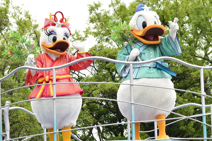 徒歩キャラの次はドナルドとデイジーがフロートに乗ってきます。