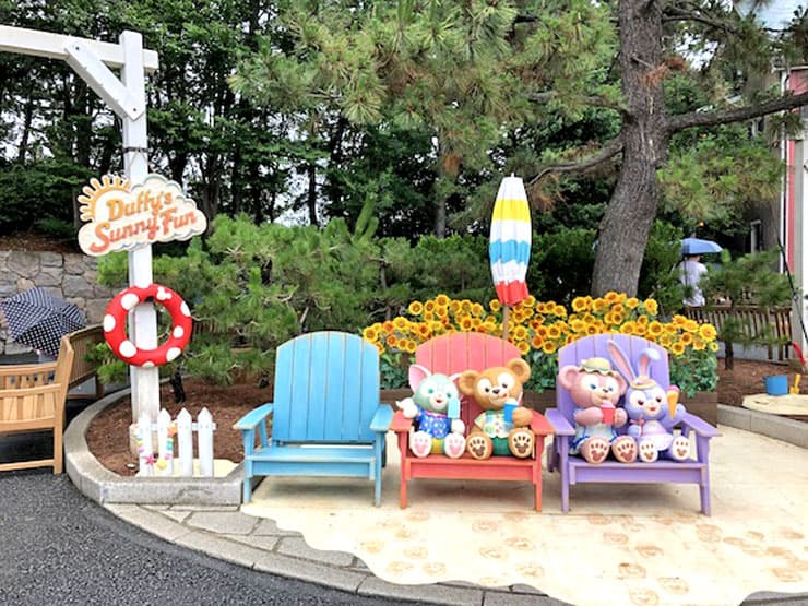 この時期だけのコスチュームを着たダッフィーフレンズが、思い思いに夏を楽しんでいますよ。