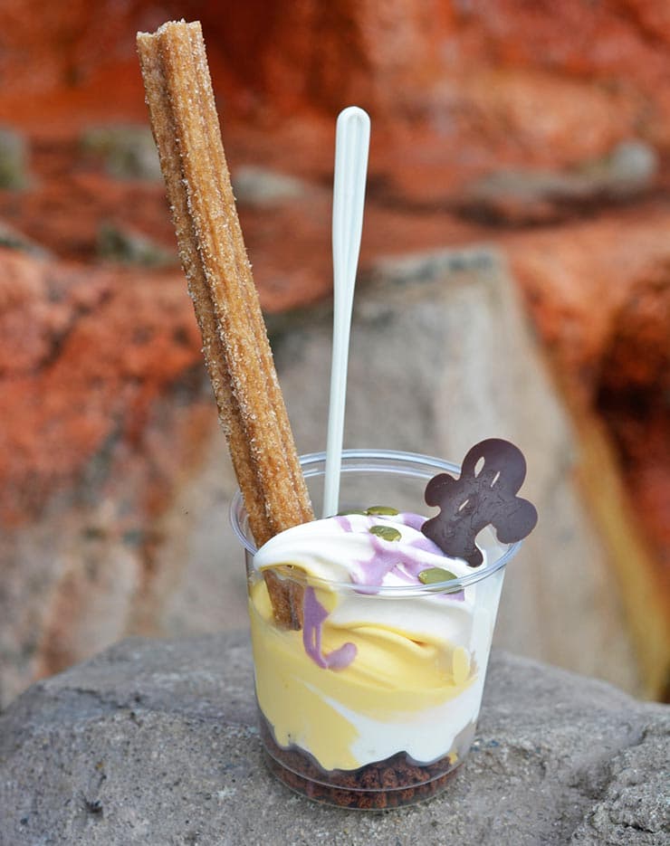こちらもハロウィーンバージョンになっていて、ソフトクリームがパンプキンとミルクのミックスに、そしてカボチャの種とチョコのおばけがトッピングされていました。