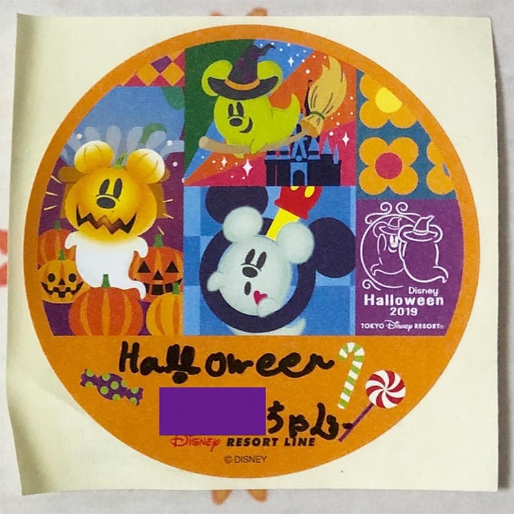 ディズニーハロウィーンの期間中、リゾートラインのキャストさんに「トリックオアトリート」の合言葉を言うと、オリジナルステッカーがもらえます♪