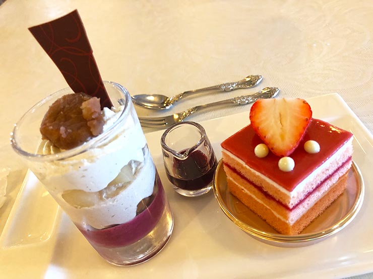 カシスムースとマロンのヴェリーヌ、ミックスベリーケーキ