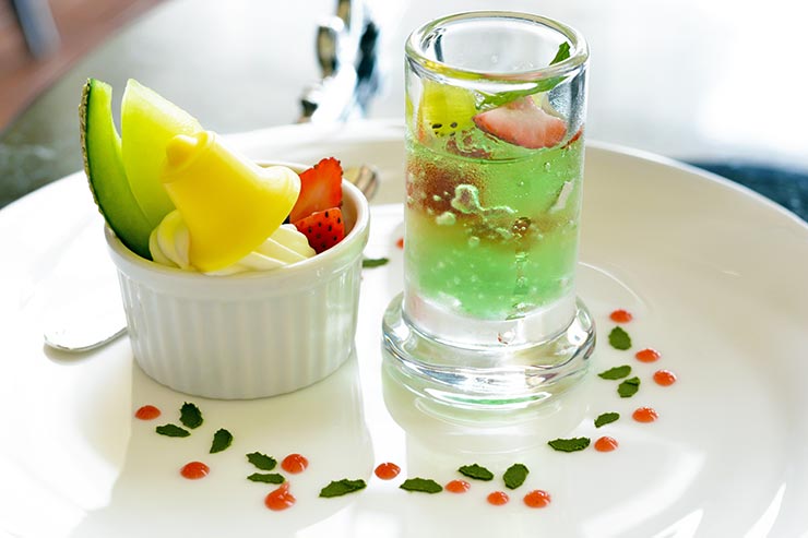 ・ 白ワインとミントのマチェドニア ・ プリンアラモード
