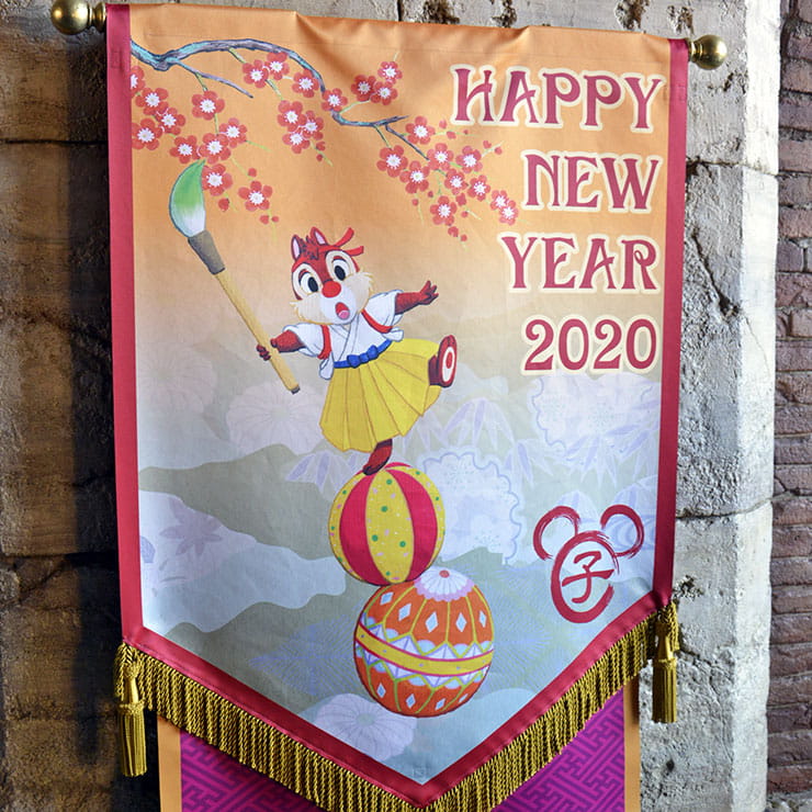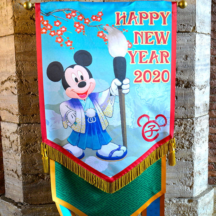そしてミラコスタ通りには、ディズニーの仲間たちの和装姿のバナーがあります。