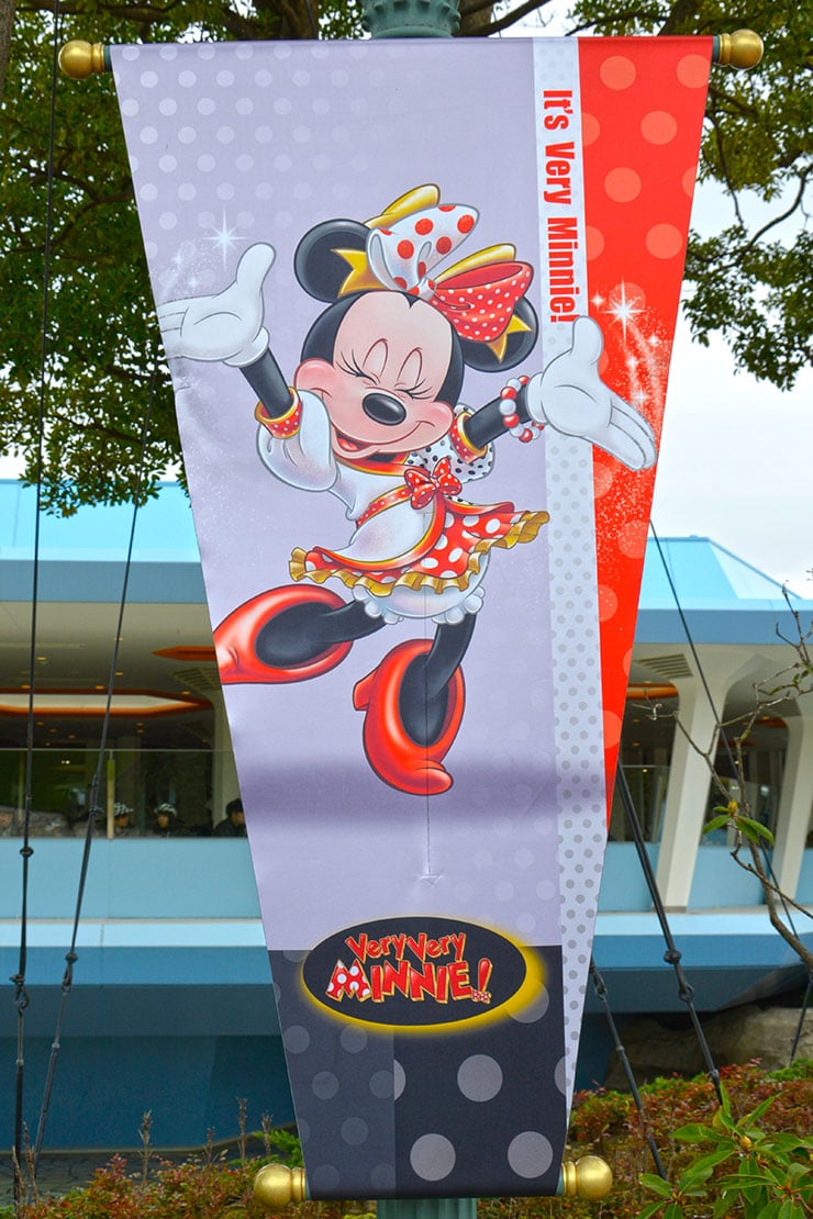 パレードルート沿いには、“ミニー”にちなんで32本のバナーがかけられています。
