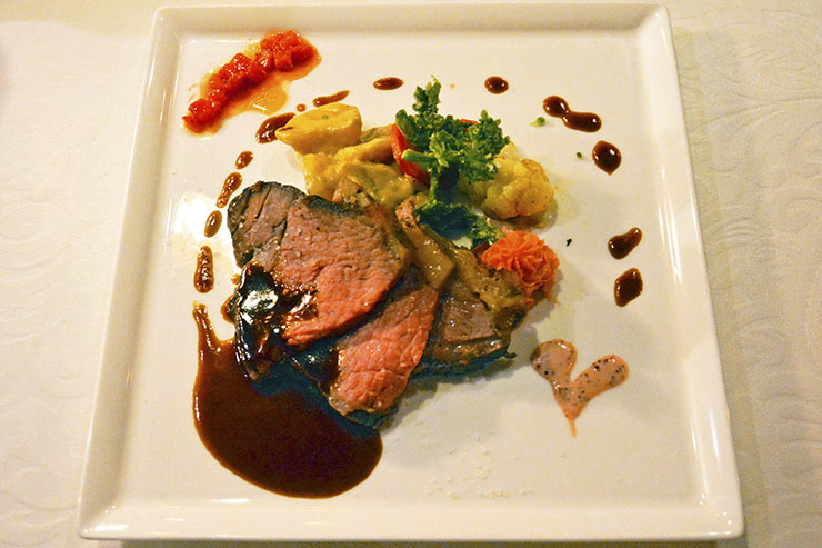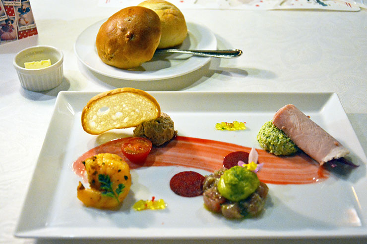 - アントレ…ローストビーフ、オマール海老のシーフードガンボ、銘柄鶏のグリエ、ベジタブルと豆乳のキッシュ